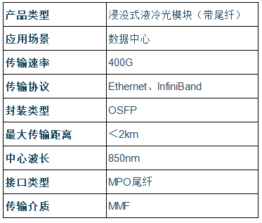 合新通信(Hexin Communications)的400G OSFP SR8液冷光模块,设计应用于浸没式数据中心400GBASE-SR8以太网链路,采用50G PAM4和VCSEL技术,在系统开启FEC的前提下,可以通过8对多模光纤实现100m以内的400Gbps数据互连。